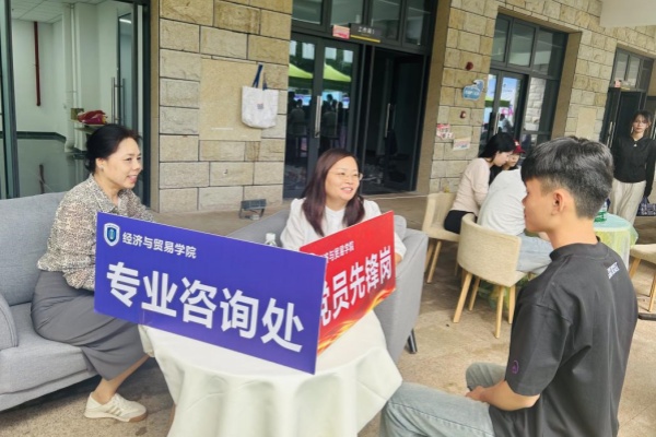 为深入贯彻落实新时代党的建设总要求,充分发挥经贸学院党总支的战斗堡垒作用和党员的先锋模范作用,经贸学院学生党支部积极践行“党建带团建”理念,组织学生党员和党员教师加入迎新队伍,于9月13日开展了一场充满温情与活力的迎新活动,为新生们开启了在校园的美好旅程。