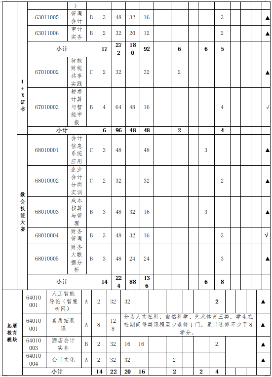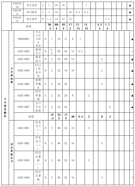 专业认知与职业规划、基础会计、商务统计、EXCEL财务应用、管理学概论、经济学基础、会计专业英语